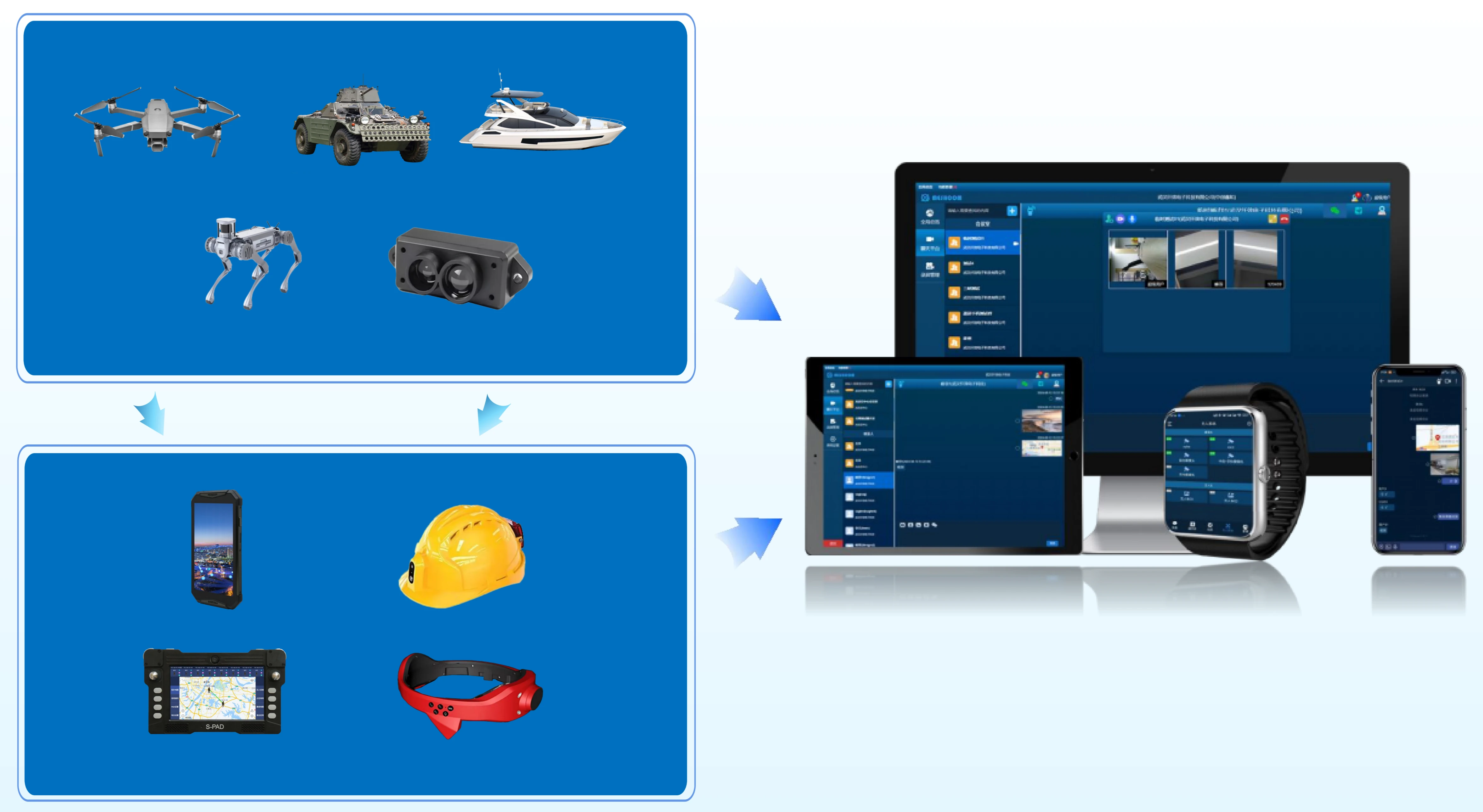 配合MESH自组网硬件使用的专业调度软件,实现音视频通信、无人系统控制、指挥调度的统一平台